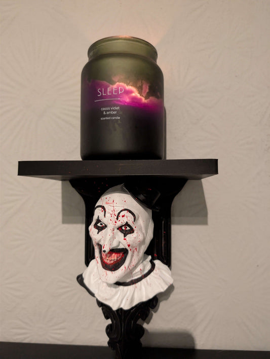 Art the Clown Wall Shelf – Horror Bust Display Shelf | Terrifier Inspired Gothic Decor | Hand Painted Horror Collectible